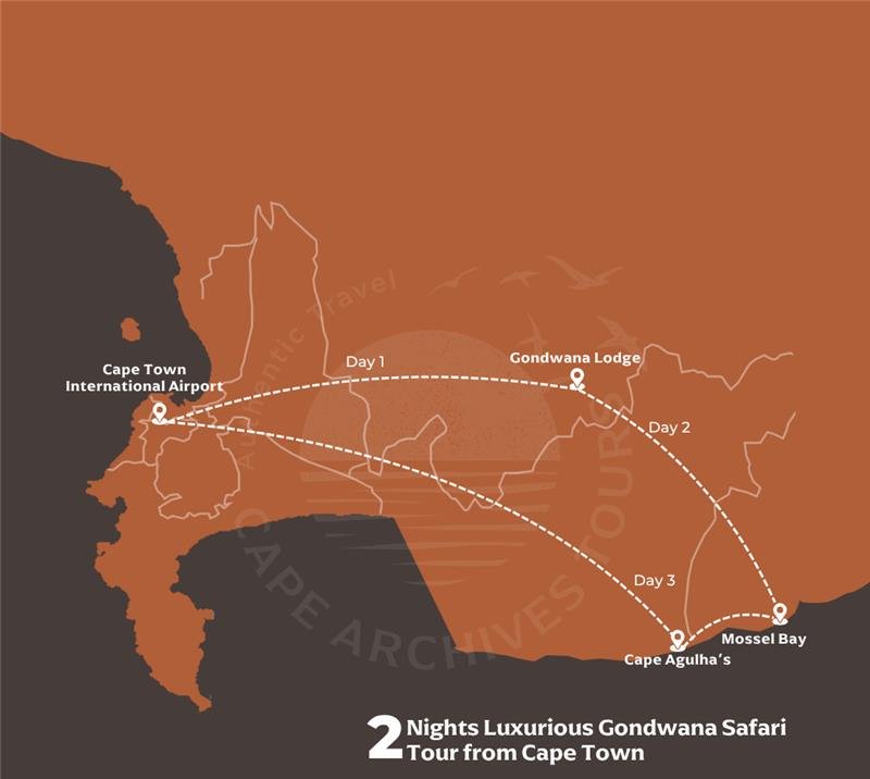 Join us on an unforgettable journey where untamed wildlife, luxurious lodges, and expert guides come together for the ultimate African adventure. With pickup available from anywhere in Cape Town or nearby towns, your experience begins seamlessly. From the moment you arrive, we handle every detail—so you can fully immerse yourself in the moment. All meals are thoughtfully included, offering a taste of the region’s rich flavors. At Gondwana Game Reserve, our skilled rangers lead thrilling safaris, sharing stories of African folklore and deep knowledge of the area’s wildlife, geology, and conservation. To enrich your journey even further, we include visits to Mossel Bay and Cape Agulhas—where you’ll stand at Africa’s southernmost tip and connect with the vibrant history and culture of this unique region.